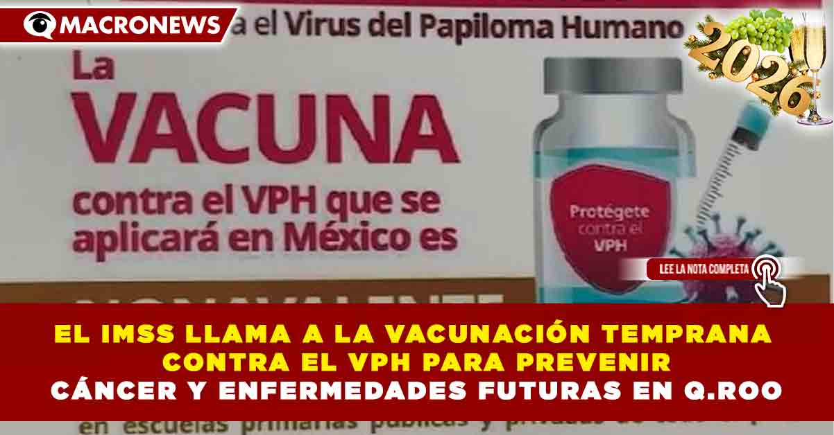 Redacción Macronews.- El Instituto Mexicano del Seguro Social (IMSS) en el estado de Quintana Roo reforzó su estrategia de prevención en materia de salud pública al promover la vacunación temprana contra el Virus del Papiloma Humano (VPH) entre niñas y niños en edad escolar, con el objetivo de reducir el riesgo de desarrollar cáncer cervicouterino y otras enfermedades en la etapa adulta.