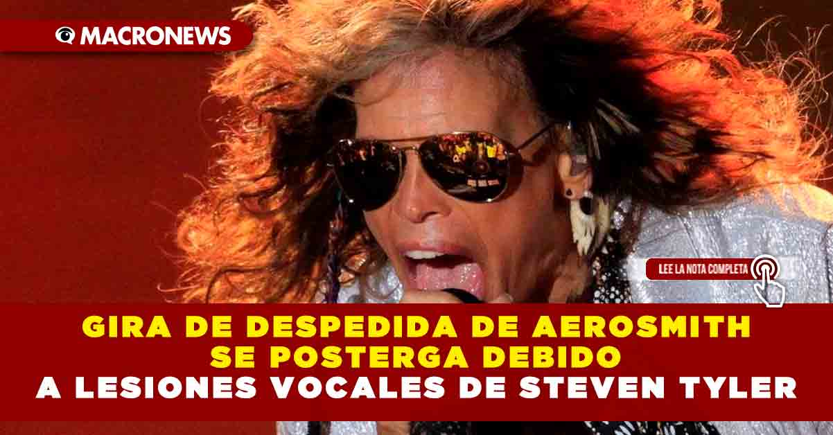 La gira de despedida de Aerosmith, «Peace Out» , se pospondrá hasta 2024 debido a que su líder y vocalista Steven Tyler no sólo tiene daño a sus cuerdas vocales, sino una fractura de laringe, así lo dio a conocer la agrupación esta mañana a través de un comunicado, en el que el cantante confiesa tener el «corazón roto», pero promete recuperarse para poder estar de nuevo en el escenario.