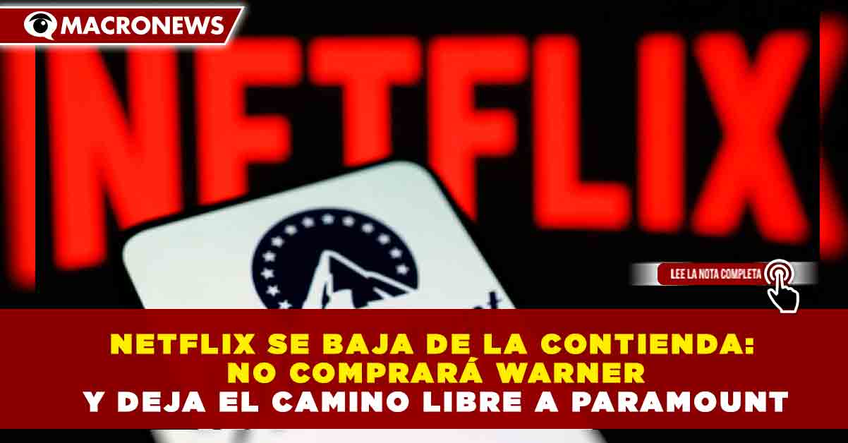 redacción macronews.- El gigante del entretenimiento Netflix anunció este jueves que se retira de la contienda para adquirir a Warner Bros. Discovery (WBD), luego de que la junta directiva de la compañía considerara como “superior” la más reciente oferta presentada por Paramount Skydance (PSKY).