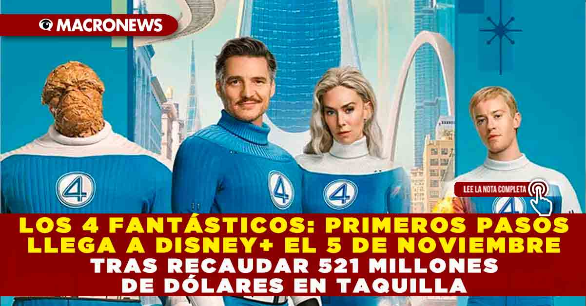 Redacción Macronews.- Marvel Studios confirmó que la película ‘Los 4 fantásticos: Primeros pasos’, protagonizada por Pedro Pascal, estará disponible en Disney+ a partir del 5 de noviembre de 2025, sin costo adicional para los suscriptores. El largometraje, considerado el mayor éxito de Marvel en lo que va del año, llega a streaming 103 días después de su estreno en cines, cumpliendo con el plazo habitual de distribución digital.