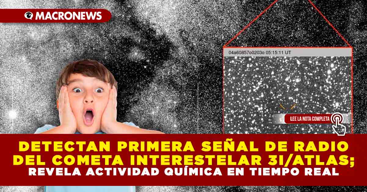 Redacción Macronews.- El cometa 3I/ATLAS, descubierto el 1 de julio de 2025 por el telescopio ATLAS en Chile, se ha convertido en el tercer objeto interestelar identificado que no pertenece a nuestro sistema solar, después de Oumuamua (2017) y 2I/Borisov (2019). Su reciente detección de dos señales de radio marca un hito en la astronomía moderna, al permitir estudiar por primera vez la actividad química en tiempo real de un cuerpo celeste proveniente de otro sistema estelar.