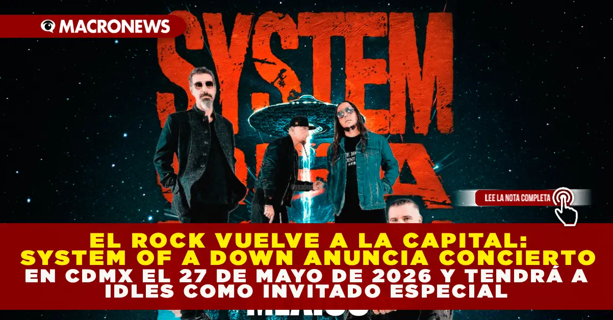 Redacción Macronews.- Tras el rotundo éxito de su gira por Norteamérica y la venta masiva de 500,000 boletos en América Latina, los íconos del rock ganadores del premio GRAMMY®, System Of A Down (S.O.A.D), han anunciado su muy esperado regreso a la Ciudad de México para el 27 de mayo de 2026.