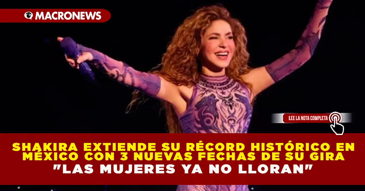 Redacción Macronews.- La superestrella colombiana Shakira continúa consolidando su dominio en la escena musical mexicana al anunciar tres nuevas fechas para su exitosa gira mundial, «Las Mujeres Ya No Lloran».