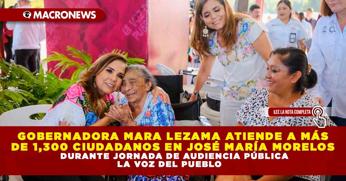 Redacción Macronews.- La gobernadora Mara Lezama Espinosa cerró las audiencias públicas de este año con una gran jornada del programa «La Voz del Pueblo» en José María Morelos, donde se atendieron a más de 1,315 personas de la cabecera municipal y comunidades aledañas. La audiencia, que se distinguió por el contacto directo y sin intermediarios entre la titular del Ejecutivo y la ciudadanía, registró la asistencia de 929 mujeres y 386 hombres.