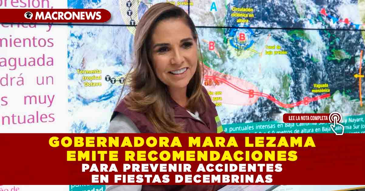 Redacción Macronews.- La gobernadora de Quintana Roo, Mara Lezama, compartió en sus redes sociales una serie de recomendaciones dirigidas a la población con motivo de las celebraciones decembrinas. El objetivo es fomentar la responsabilidad y garantizar la seguridad en los hogares durante esta temporada, en coordinación con la Coordinación Estatal de Protección Civil.