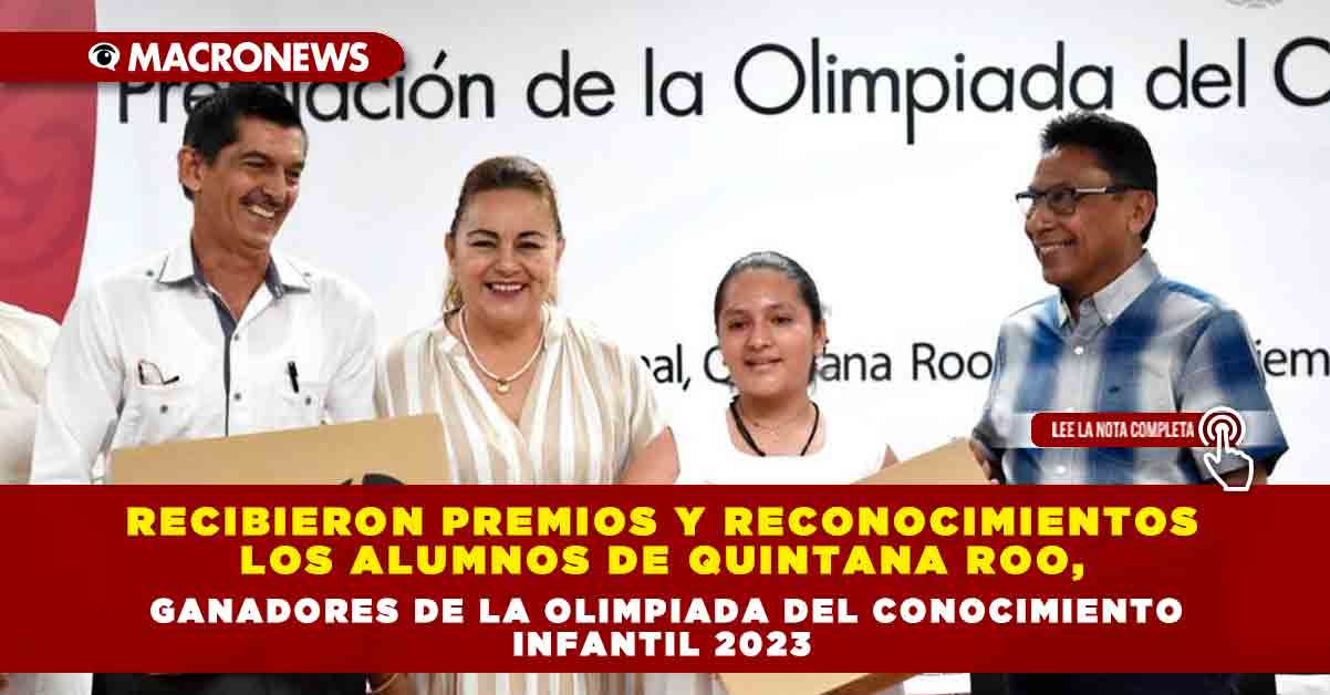 Chetumal.- En reconocimiento a su destacada participación en la Olimpiada del Conocimiento Infantil (OCI) 2023, el Gobierno del Estado a través del secretario de Educación de Quintana Roo (SEQ), Carlos Gorocica Moreno, entregó reconocimientos, premios y becas a las y los 10 alumnos ganadores de dicho concurso.
