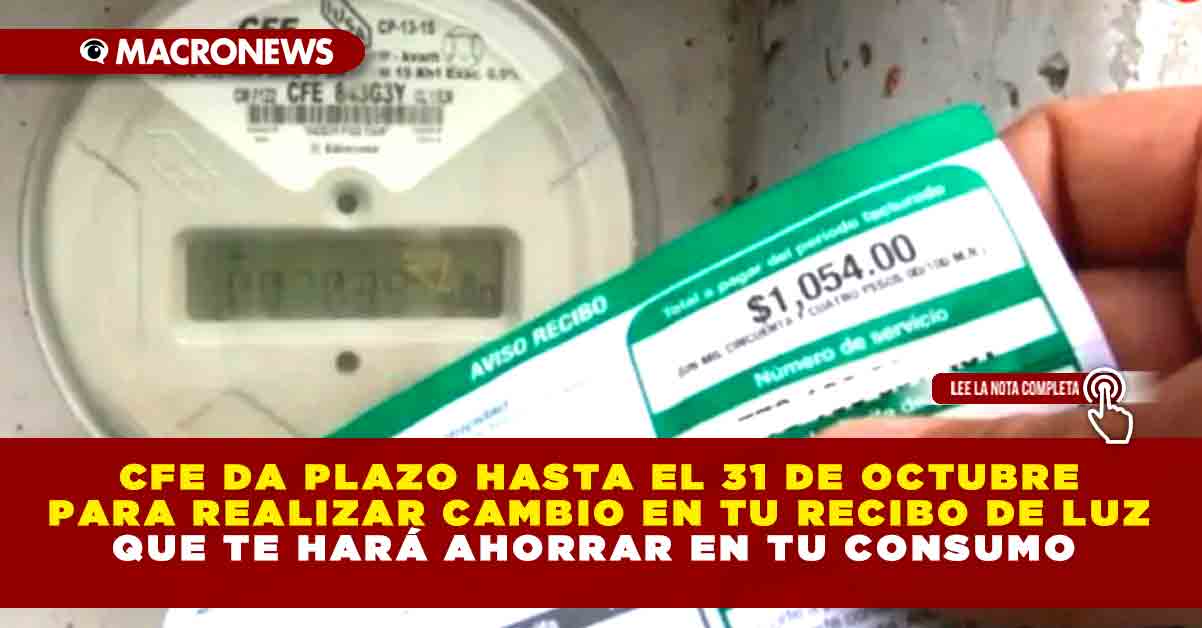 La Comisión Federal de Electricidad anunció que tienes hasta el 31 de octubre para hacer este cambio y ahorrar en el recibo de luz, una posibilidad que da esta paraestatal a las personas que tienen un contrato de este servicio con ellos.