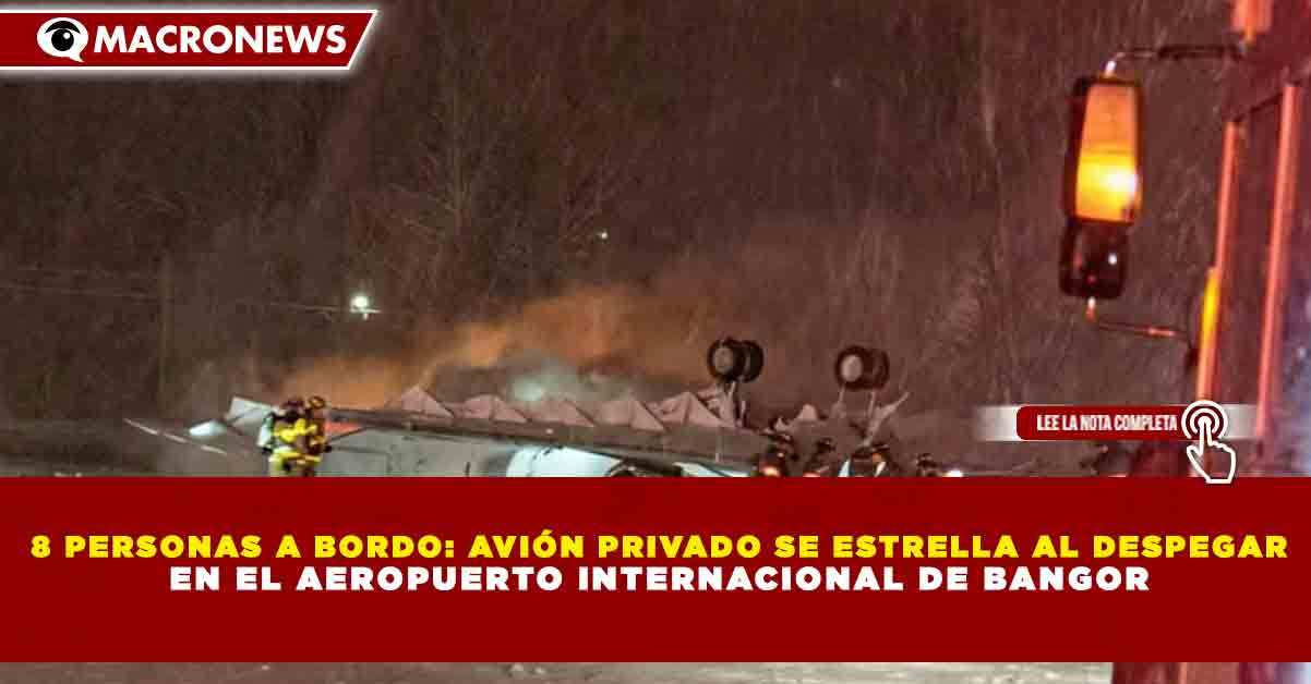Redacción Macronews.- Un avión privado con ocho personas a bordo se estrelló al intentar despegar este domingo por la noche en el Aeropuerto Internacional de Bangor, en el estado de Maine, Estados Unidos, lo que provocó el cierre de la pista y activó un operativo de emergencia, informaron autoridades aeronáuticas.