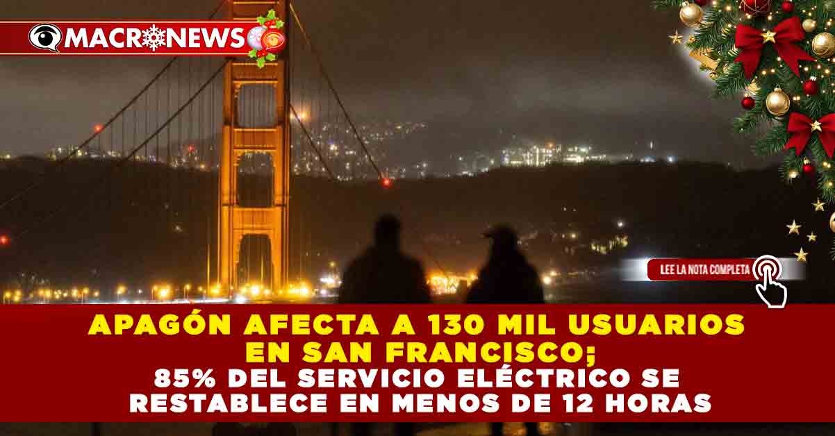 Redacción Macronews.- La electricidad se restableció en la mayoría de los hogares de San Francisco la mañana de este domingo, luego del apagón masivo registrado la noche del sábado a causa de un incendio en una subestación eléctrica, incidente que dejó sin servicio a cerca de 130 mil clientes en plena temporada de compras navideñas, informó la empresa Pacific Gas & Electric Company (PG&E).