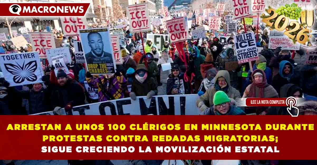 Redacción Macronews.- La policía arrestó este viernes a alrededor de 100 clérigos que se manifestaban en el Aeropuerto Internacional de Minneapolis–St. Paul, el más grande de Minnesota, en protesta contra las redadas migratorias y los vuelos de deportación, mientras miles de personas se concentraban en el centro de Minneapolis, pese a las bajas temperaturas.