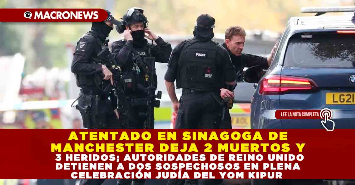 ATENTADO EN SINAGOGA DE MANCHESTER DEJA 2 MUERTOS Y 3 HERIDOS; AUTORIDADES DE REINO UNIDO DETIENEN A DOS SOSPECHOSOS EN PLENA CELEBRACIÓN JUDÍA DEL YOM KIPUR