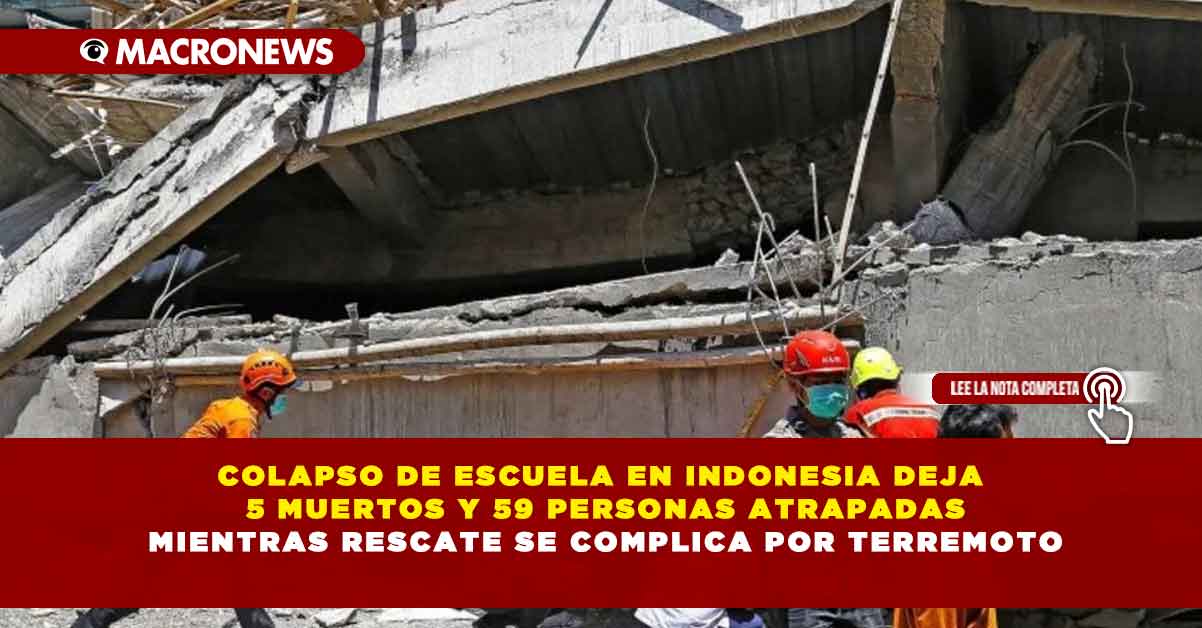 El miércoles, cinco sobrevivientes y dos cadáveres fueron rescatados de los escombros de la escuela situada a 30 km de la metrópolis de Surabaya, al este de la isla de Java, lo que elevó a cinco el número de fallecidos.