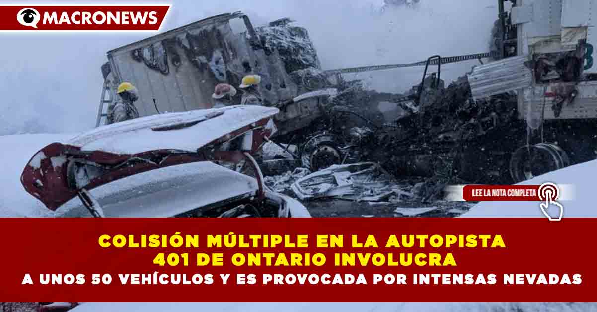 Redacción Macronews.- Una colisión múltiple registrada en la autopista 401, una de las vías más transitadas de Ontario, involucró a aproximadamente 50 vehículos, generando un importante despliegue de servicios de emergencia y severas afectaciones a la circulación.