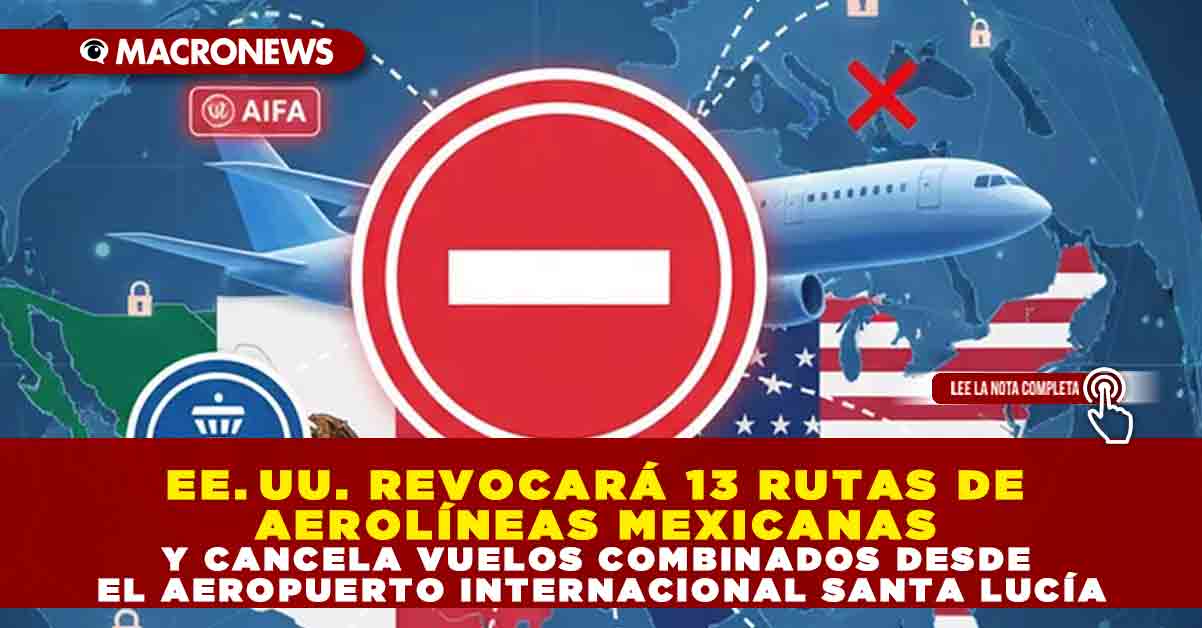 EE. UU. REVOCARÁ 13 RUTAS DE AEROLÍNEAS MEXICANAS Y CANCELA VUELOS COMBINADOS DESDE EL AEROPUERTO INTERNACIONAL SANTA LUCÍA