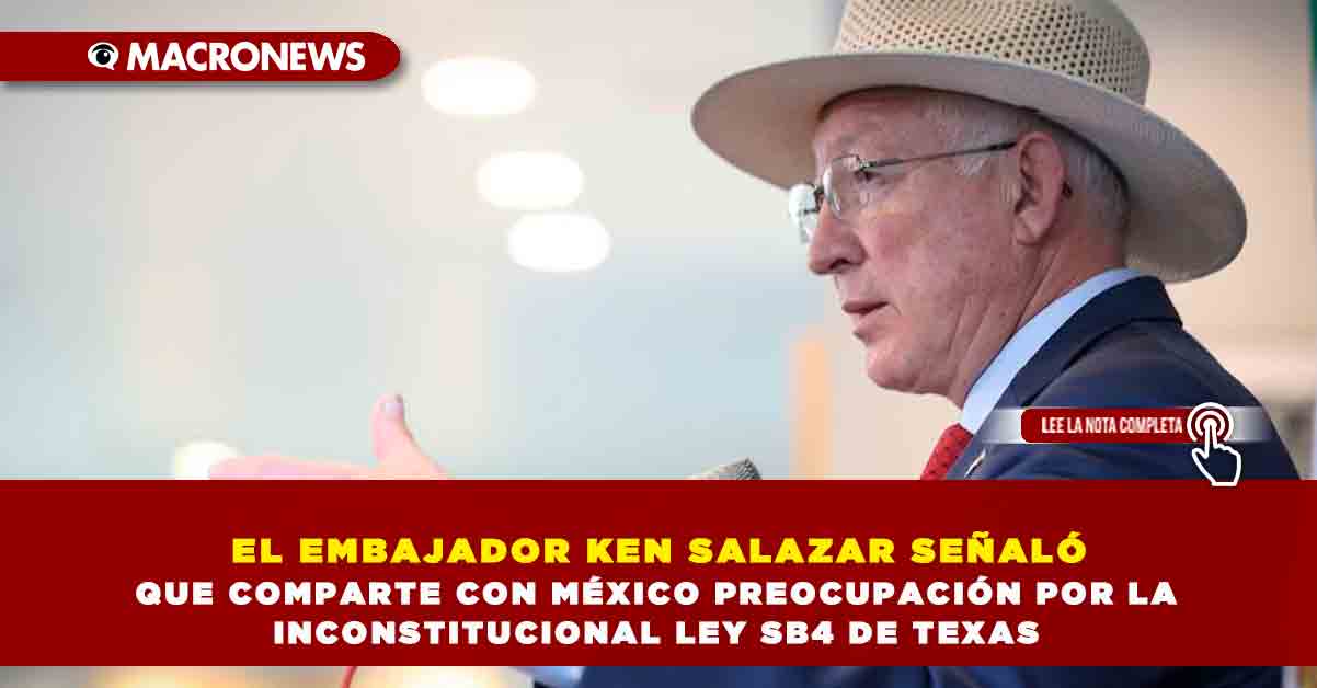 Este jueves 21 de marzo, el embajador de Estados Unidos en México, Ken Salazar, expresó su preocupación por la Ley SB4 de Texas, por lo que, aseguró, continúa impugnándola en los tribunales.