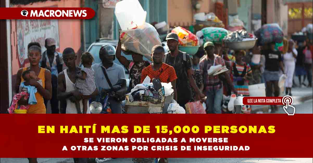 La nueva ola de violencia protagonizada por las pandillas en Puerto Príncipe, la capital de Haití, provocó que en cuestión de días más de 15,000 personas se vieran obligadas a moverse a otras zonas, según la ONU, que subrayó que la mayor parte de estos desplazados estaban ya fuera de sus hogares por crisis de inseguridad previas.