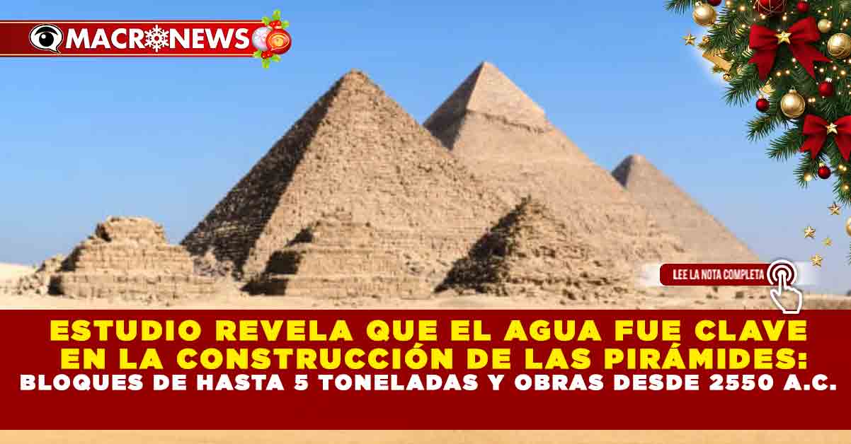Redacción Macronews.- Un reciente estudio científico ha reavivado el debate sobre cómo fueron construidas las pirámides de Egipto, al proponer que el agua —y no únicamente la fuerza humana— fue un elemento fundamental en la edificación de estos monumentos milenarios, algunos levantados hace más de 4 mil 500 años y con bloques que superan las cinco toneladas de peso.