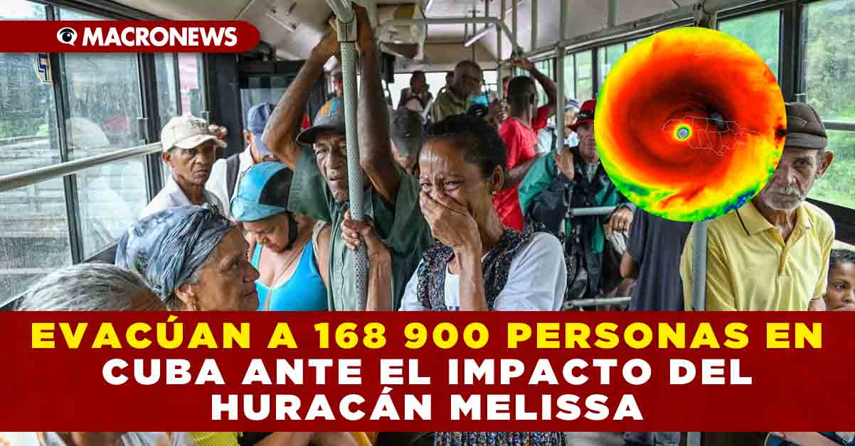 Redacción Macronews.- Las autoridades de Cuba han evacuado a 168 900 personas en la provincia de Santiago de Cuba, la segunda más poblada de la isla, ante la inminente llegada del huracán Melissa, que avanza con rumbo al territorio insular.