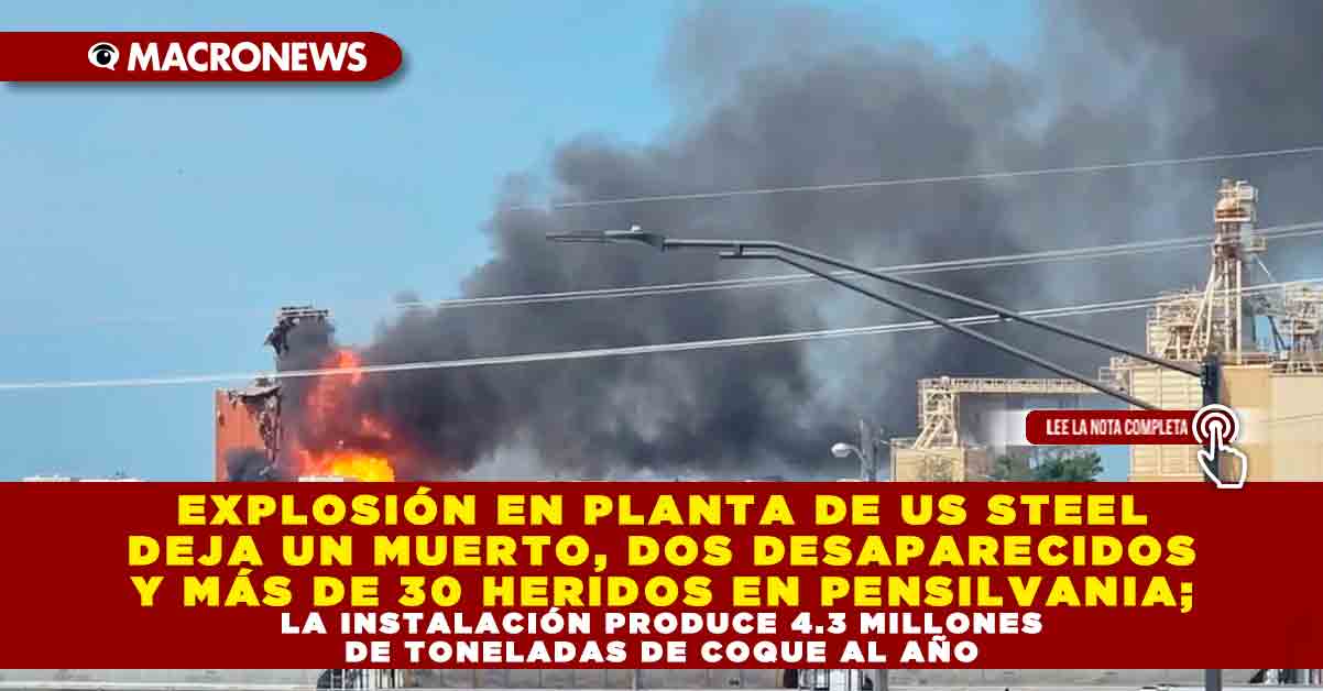 - Explosión en planta de US Steel deja un muerto, dos desaparecidos y más de 30 heridos en Pensilvania; la instalación produce 4.3 millones de toneladas de coque al año