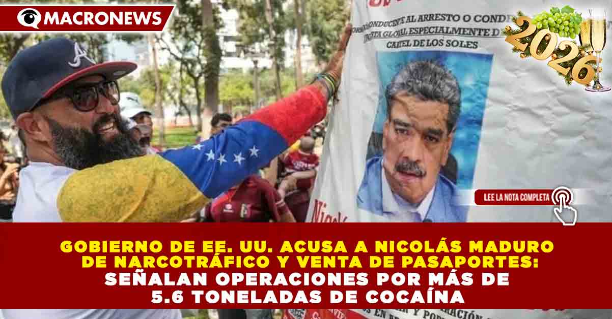 Redacción Macronews.- El Gobierno de Estados Unidos presentó una nueva acusación federal contra el presidente “de facto” de Venezuela, Nicolás Maduro, en la que lo señala de vender pasaportes diplomáticos a narcotraficantes, facilitar vuelos oficiales desde México para trasladar dinero del narcotráfico y participar en operaciones que involucraron más de 5.6 toneladas de cocaína, según documentos judiciales difundidos por autoridades estadounidenses.
