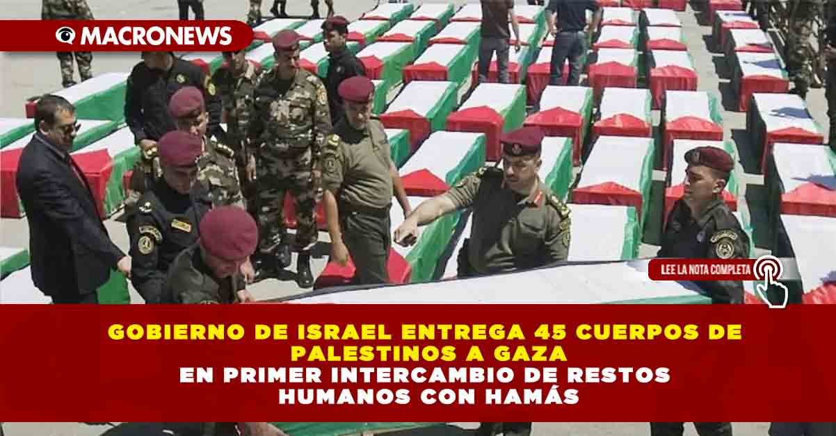 GOBIERNO DE ISRAEL ENTREGA 45 CUERPOS DE PALESTINOS A GAZA EN PRIMER INTERCAMBIO DE RESTOS HUMANOS CON HAMÁS
