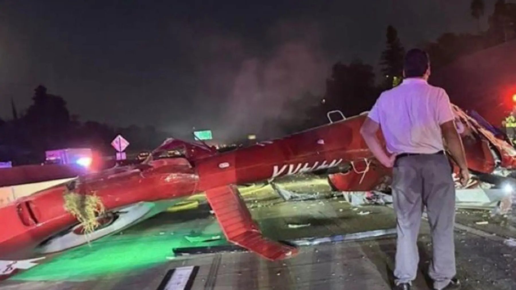 El helicóptero, utilizado para servicios médicos aéreos, impactó en los carriles en dirección este. Aún se desconoce si se dirigía o provenía de algún hospital al momento del siniestro.
