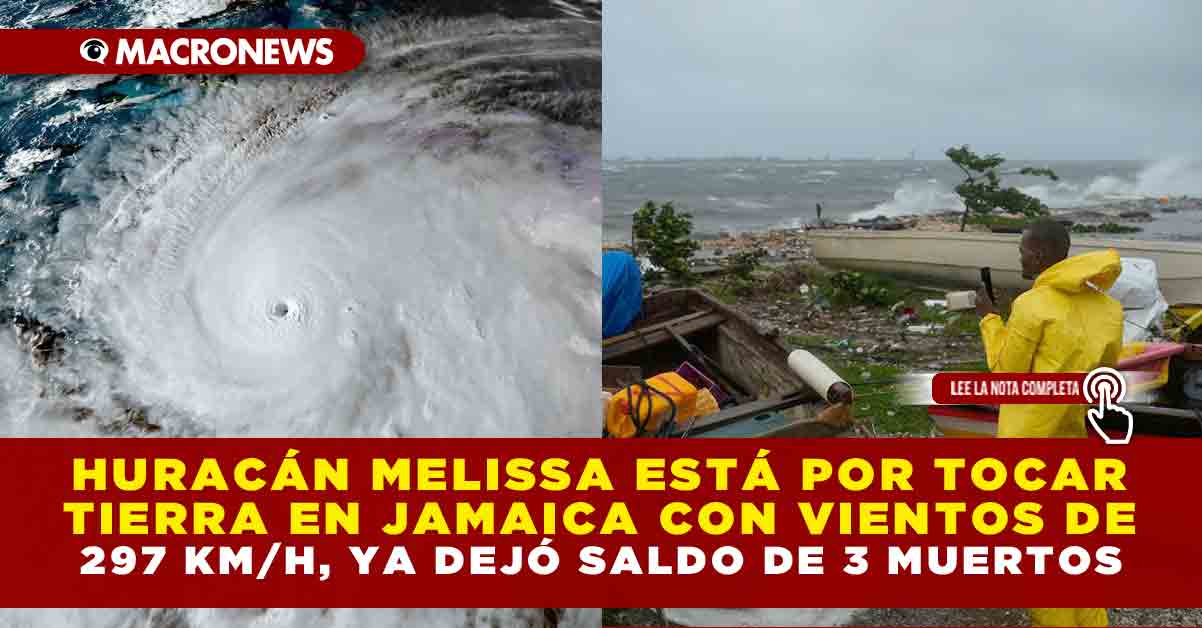 Redacción Macronews.- El huracán Melissa, de categoría 5 en la escala Saffir-Simpson, se encuentra a punto de tocar tierra en Jamaica, trayendo consigo vientos máximos sostenidos de 297 km/h. Las autoridades locales reportan tres muertes relacionadas con el fenómeno, incluso antes de que el huracán impacte directamente la isla, mientras se registran vientos catastróficos, marejadas ciclónicas e inundaciones repentinas que azotan la región.
