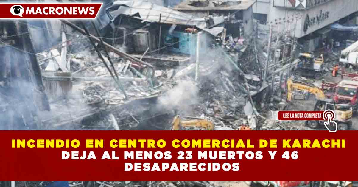 Redacción Macronews.- Al menos 23 personas murieron tras un incendio de gran magnitud en un centro comercial de varios pisos en Karachi, Pakistán, mientras que 46 personas continúan desaparecidas, informaron autoridades locales conforme avanzan las labores de rescate en el edificio severamente dañado.
