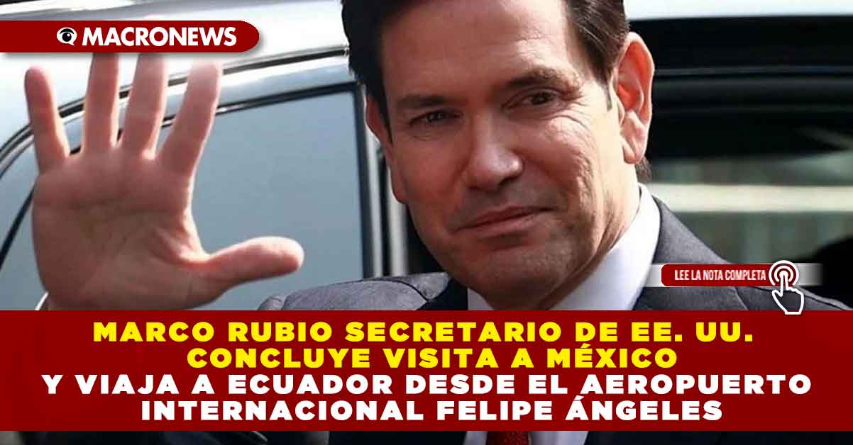 Marco Rubio, Secretario de Estado de Estados Unidos, partió esta tarde del Aeropuerto Internacional Felipe Ángeles (AIFA) con destino a Quito, Ecuador.