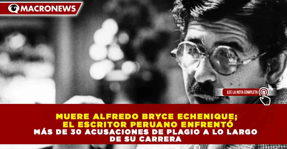 Redacción Macronews.- El reconocido escritor peruano Alfredo Bryce Echenique falleció dejando tras de sí una amplia trayectoria literaria marcada tanto por el reconocimiento internacional como por la polémica, luego de enfrentar más de 30 acusaciones de plagio relacionadas con artículos y textos publicados durante su carrera.