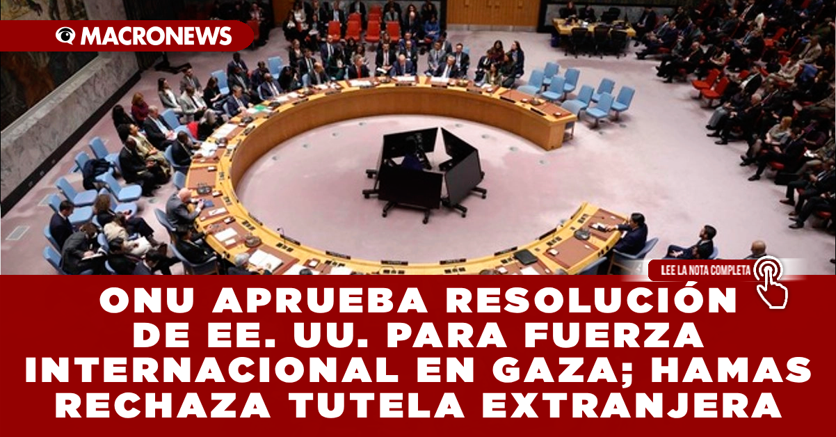 NUEVA YORK, EE. UU. El Consejo de Seguridad de la Organización de las Naciones Unidas (ONU) adoptó una resolución impulsada por Estados Unidos que detalla el mandato de una Fuerza Internacional de Estabilización (ISF) en Gaza, en el marco del alto el fuego negociado por el presidente Donald Trump.