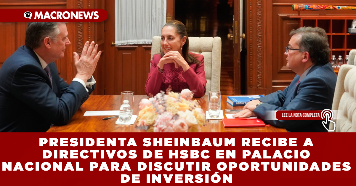 La mandataria federal recibió a Michael Roberts, director ejecutivo de HSBC, y a Jorge Arce, director general de HSBC México. El encuentro se centró en la exploración de las «grandes oportunidades» que ofrece el país en el actual contexto económico global.