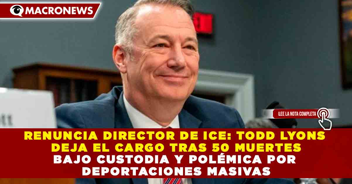 Redacción Macronews.- El director interino del Servicio de Inmigración y Control de Aduanas de Estados Unidos (ICE), Todd Lyons, presentó su renuncia este jueves ante el secretario de Seguridad Nacional, Markwayne Mullin, en medio de cuestionamientos por su gestión al frente de la política de deportaciones masivas impulsada por la administración de Donald Trump.