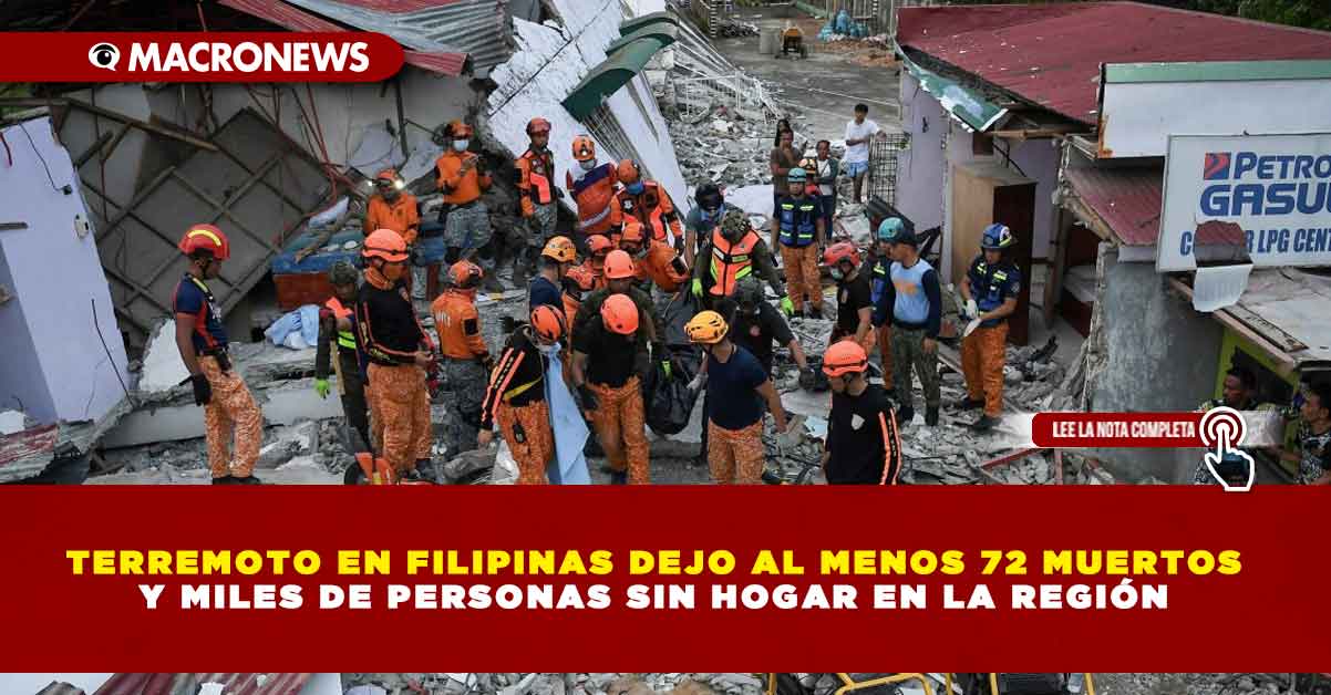 El saldo de víctimas por el terremoto de magnitud 6.9 que sacudió el martes el centro de Filipinas aumentó a 72, informaron los rescatistas el jueves, mientras las autoridades concentran esfuerzos en atender a los heridos y a las miles de personas que quedaron sin hogar.
