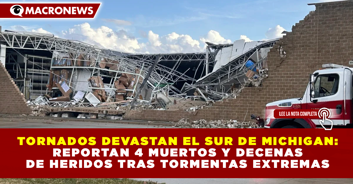 UNION CITY, MI. – Una serie de poderosos tornados redujo casas a escombros y dejó un rastro de destrucción en el sur de Michigan el viernes por la tarde. Las autoridades han confirmado el fallecimiento de cuatro personas: tres en la zona de Union Lake (Condado de Branch) y una más en el Condado de Cass. El fenómeno, captado en impactantes videos por residentes locales, arrancó árboles de raíz y lanzó partes de techos a cientos de metros de distancia.