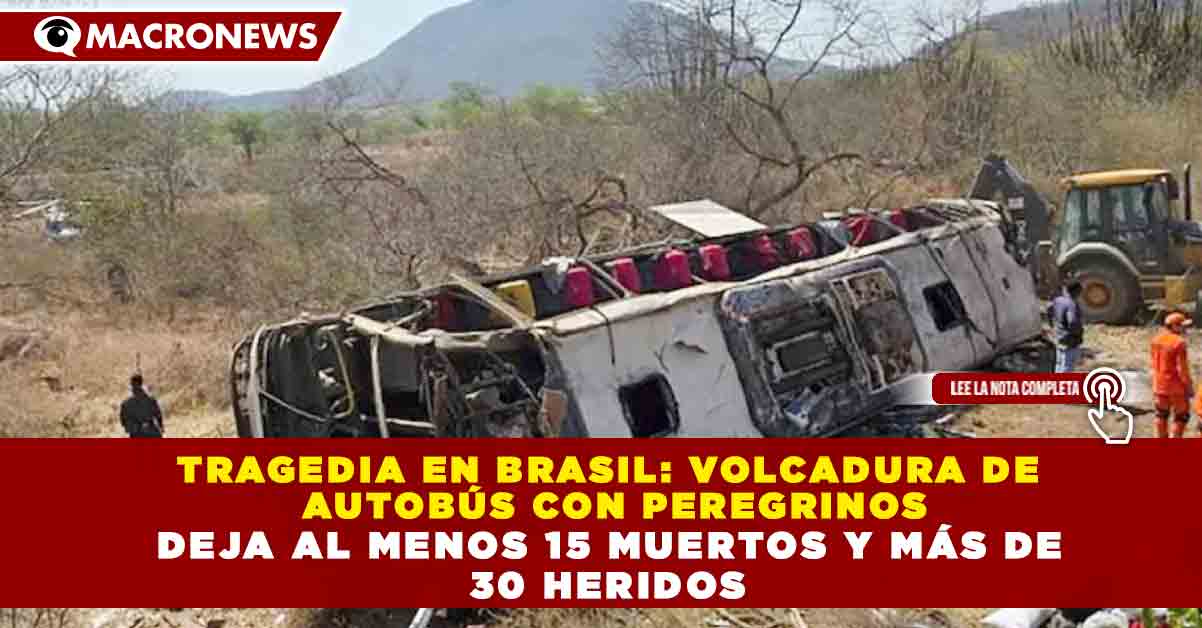 Redacción Macronews.- Al menos 15 personas murieron y más de 30 resultaron heridas tras la volcadura de un autobús que transportaba peregrinos en Brasil, informaron este miércoles autoridades locales y cuerpos de emergencia.