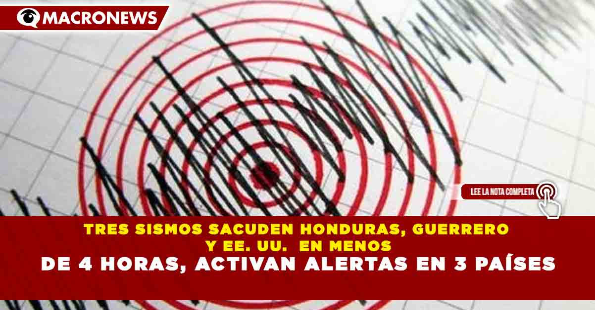 Redacción Macronews.- Al menos tres sismos registrados en menos de cuatro horas sacudieron este viernes distintas regiones de Honduras, el estado de Guerrero en México y Estados Unidos, generando alerta entre autoridades y población, aunque hasta el momento no se reportan víctimas ni daños graves, de acuerdo con los primeros informes oficiales.
