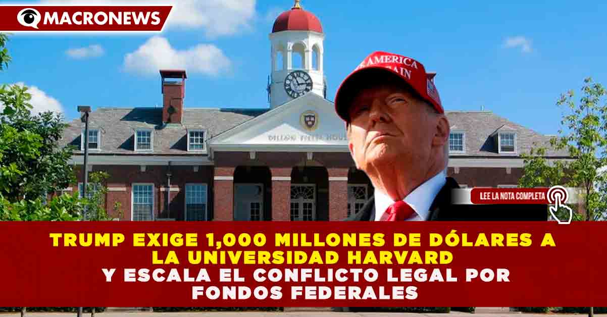 Redacción Macronews.- El conflicto legal entre el presidente de Estados Unidos, Donald Trump, y la Universidad de Harvard se intensificó luego de que el mandatario exigiera una compensación de 1,000 millones de dólares por concepto de “daños y perjuicios”, en medio de un enfrentamiento que inició al comienzo de su segundo mandato presidencial.