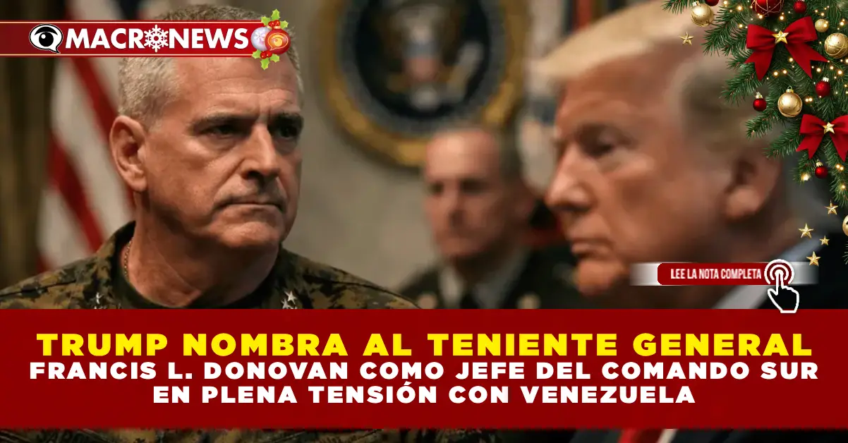 REDACCION MACRONEWS.- El presidente de Estados Unidos, Donald Trump, ha propuesto formalmente al teniente general del Cuerpo de Marines, Francis L. Donovan, para liderar el Comando Sur (SouthCom), el organismo responsable de las operaciones militares en América Latina y el Caribe. El anuncio, realizado por el Pentágono este viernes, ocurre en un momento de extrema volatilidad diplomática, poco después de que el mandatario estadounidense afirmara públicamente que no descarta una confrontación armada con Venezuela.