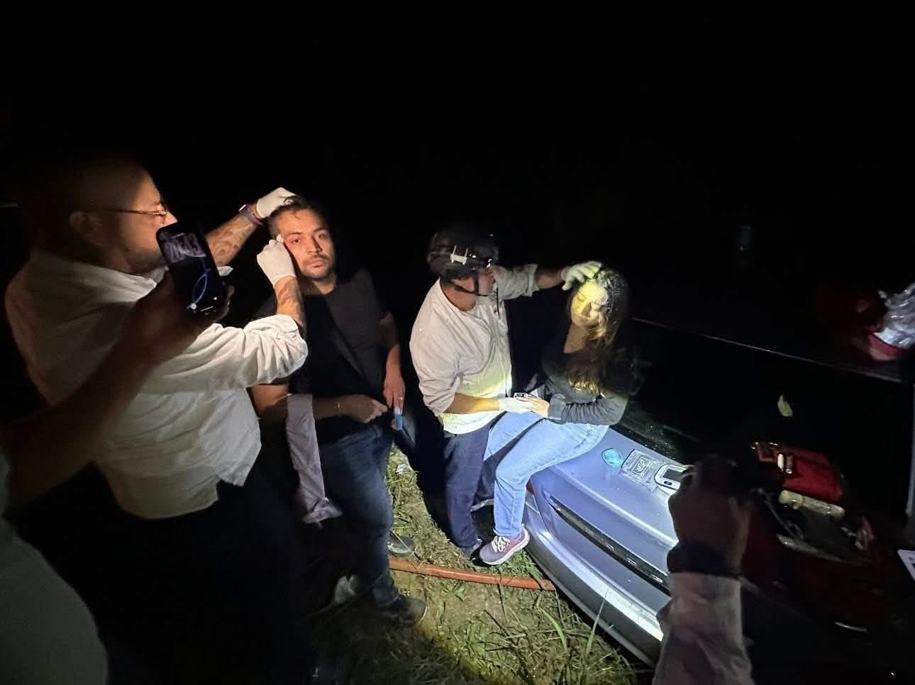 Conductores que se detuvieron al ver el accidente procedieron a reportar el siniestro al número de emergencia 911; arribando rápidamente elementos de la Guardia Nacional División Caminos y paramédicos de la Cruz Roja quiénes realizaron maniobras de rescate y posteriormente le brindaron atención prehospitalaria a la pareja quienes resultaton lesionados. La mujer, quien resultó con varias lesiones de consideración, fue trasladada a un hospital de la ciudad.