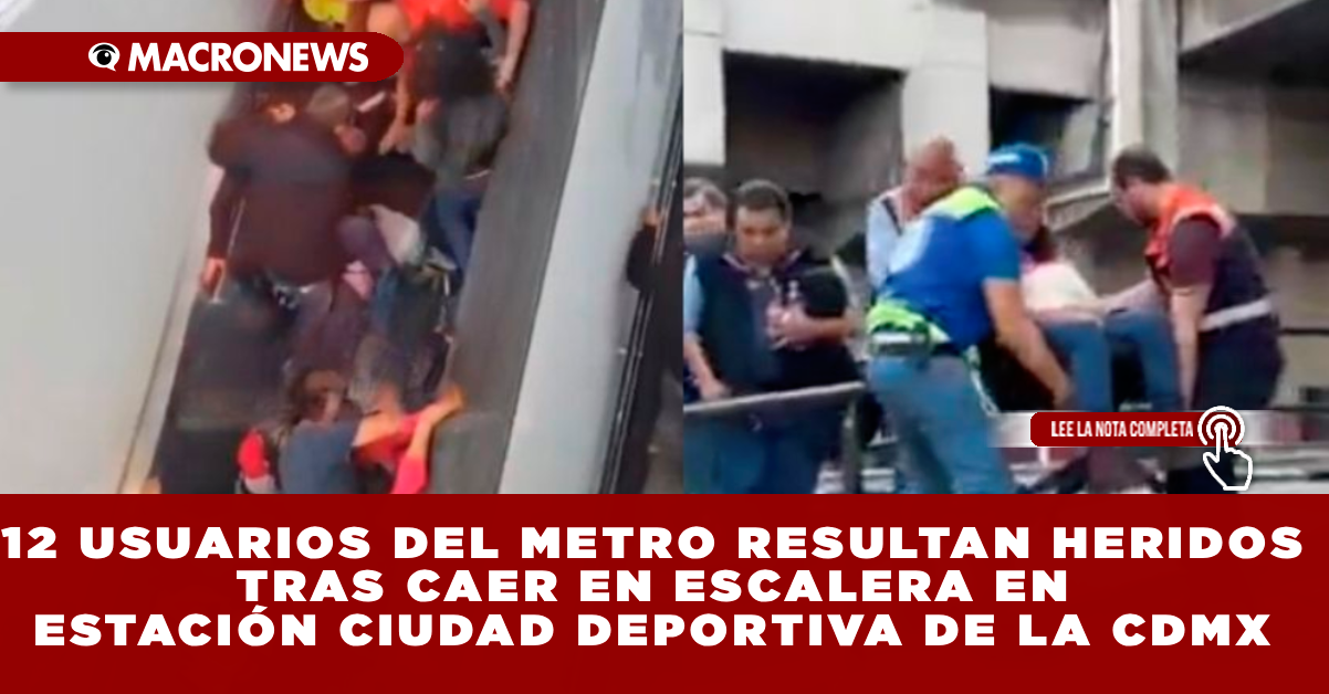 CIUDAD DE MÉXICO. Un total de 12 usuarios de la Línea 9 del Metro resultaron heridos este martes en la estación Ciudad Deportiva tras caer en una escalera electromecánica.