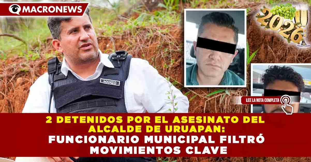 Redacción Macronews.- Dos hombres fueron detenidos por el asesinato de Carlos Manzo, alcalde de Uruapan, Michoacán, confirmó el secretario de Seguridad y Protección Ciudadana, Omar García Harfuch, quien detalló que uno de los implicados era funcionario del propio ayuntamiento, lo que fue determinante para coordinar el ataque ocurrido el 1 de noviembre durante el Festival de las Velas.