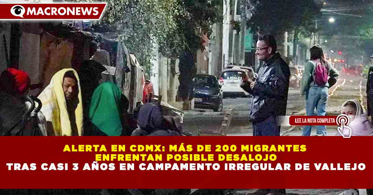 Redacción Macronews.- Más de 200 migrantes que habitan un campamento irregular en la colonia Vallejo, en la Ciudad de México, enfrentan un posible desalojo luego de que autoridades capitalinas emitieran una notificación para su reubicación, lo que ha generado incertidumbre entre las familias que han vivido en el sitio durante casi tres años.