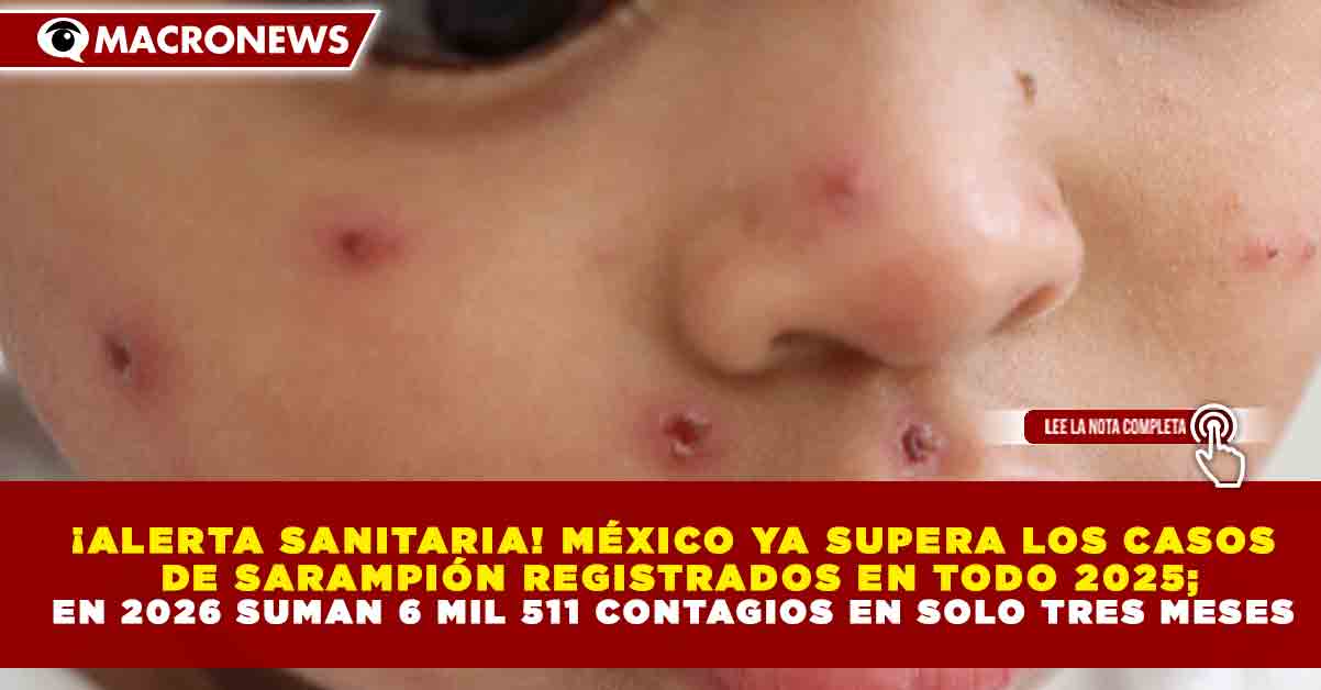 Redacción Macronews.- El resurgimiento del Sarampión mantiene en alerta a las autoridades sanitarias en México, luego de que en apenas los primeros meses de 2026 se confirmaran 6,511 contagios, cifra que ya supera los 6,452 casos reportados durante todo 2025, de acuerdo con el último informe epidemiológico con corte al 10 de marzo.