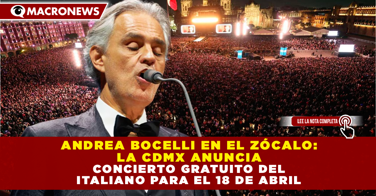 CIUDAD DE MÉXICO. – La jefa de Gobierno, Clara Brugada, confirmó este viernes que el tenor y compositor italiano Andrea Bocelli ofrecerá un concierto gratuito en el Zócalo de la Ciudad de México el próximo sábado 18 de abril de 2026. El evento forma parte de la gira mundial por el 30 aniversario de su emblemático álbum Romanza. El espectáculo, programado para iniciar a las 19:00 horas, promete ser una noche histórica que incluirá clásicos como «Con te partirò» y «Vivo per lei», además de contar con la participación de invitados sorpresa. Con esta iniciativa, el gobierno capitalino busca reafirmar a la CDMX como la «capital de la cultura en el mundo», esperando una afluencia masiva similar a los récords impuestos recientemente por artistas como Shakira y Los Fabulosos Cadillacs.