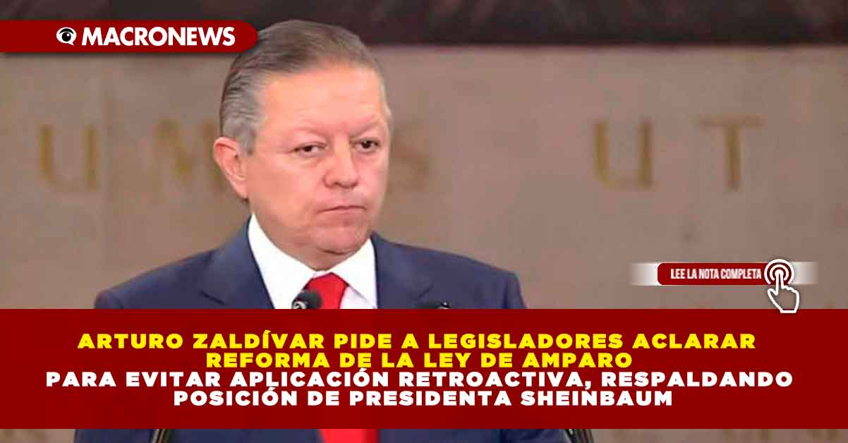 ARTURO ZALDÍVAR PIDE A LEGISLADORES ACLARAR REFORMA DE LA LEY DE AMPARO PARA EVITAR APLICACIÓN RETROACTIVA, RESPALDANDO POSICIÓN DE PRESIDENTA SHEINBAUM