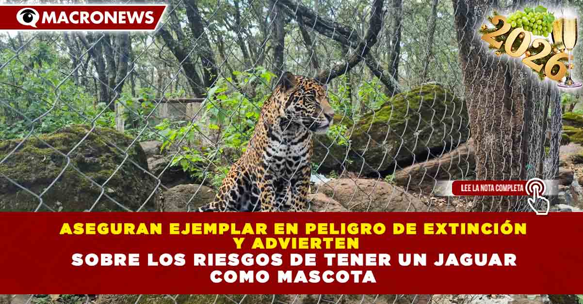 Redacción Macronews.- Autoridades ambientales aseguraron a un ejemplar de jaguar, especie catalogada en peligro de extinción, donde alertaron sobre los graves riesgos legales, ambientales y de seguridad que implica mantener a este tipo de animales silvestres como mascotas.