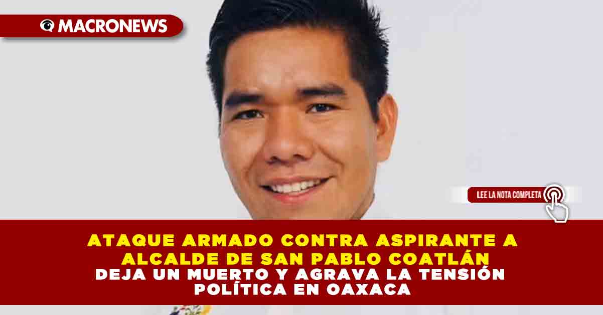 Este sábado se reportó un ataque armado en contra de Gerardo López García, aspirante a la presidencia municipal de San Pablo Coatlán, municipio de la Sierra Sur de Oaxaca, el cual dejó saldo de una persona fallecida.