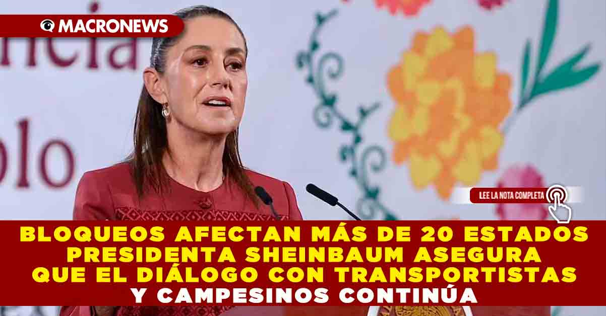 Redacción Macronews.- La presidenta Claudia Sheinbaum afirmó este lunes que el Gobierno federal no ha frenado el diálogo con las organizaciones de transportistas y campesinos que mantienen bloqueos en más de dos decenas de estados de la República. La mandataria subrayó que se han realizado mesas de trabajo y que la inconformidad no responde a falta de comunicación, sino a temas específicos como la discusión de la Ley de Aguas en el Congreso.