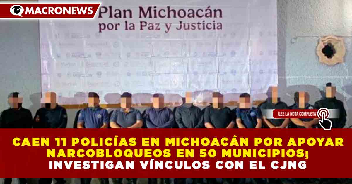 Redacción Macronews.- La Fiscalía General del Estado detuvo a 11 policías municipales de Ecuandureo, Michoacán, por su presunta participación en los narcobloqueos registrados tras la muerte de Nemesio Oseguera Cervantes, alias “El Mencho”, líder del Cártel Jalisco Nueva Generación (CJNG).